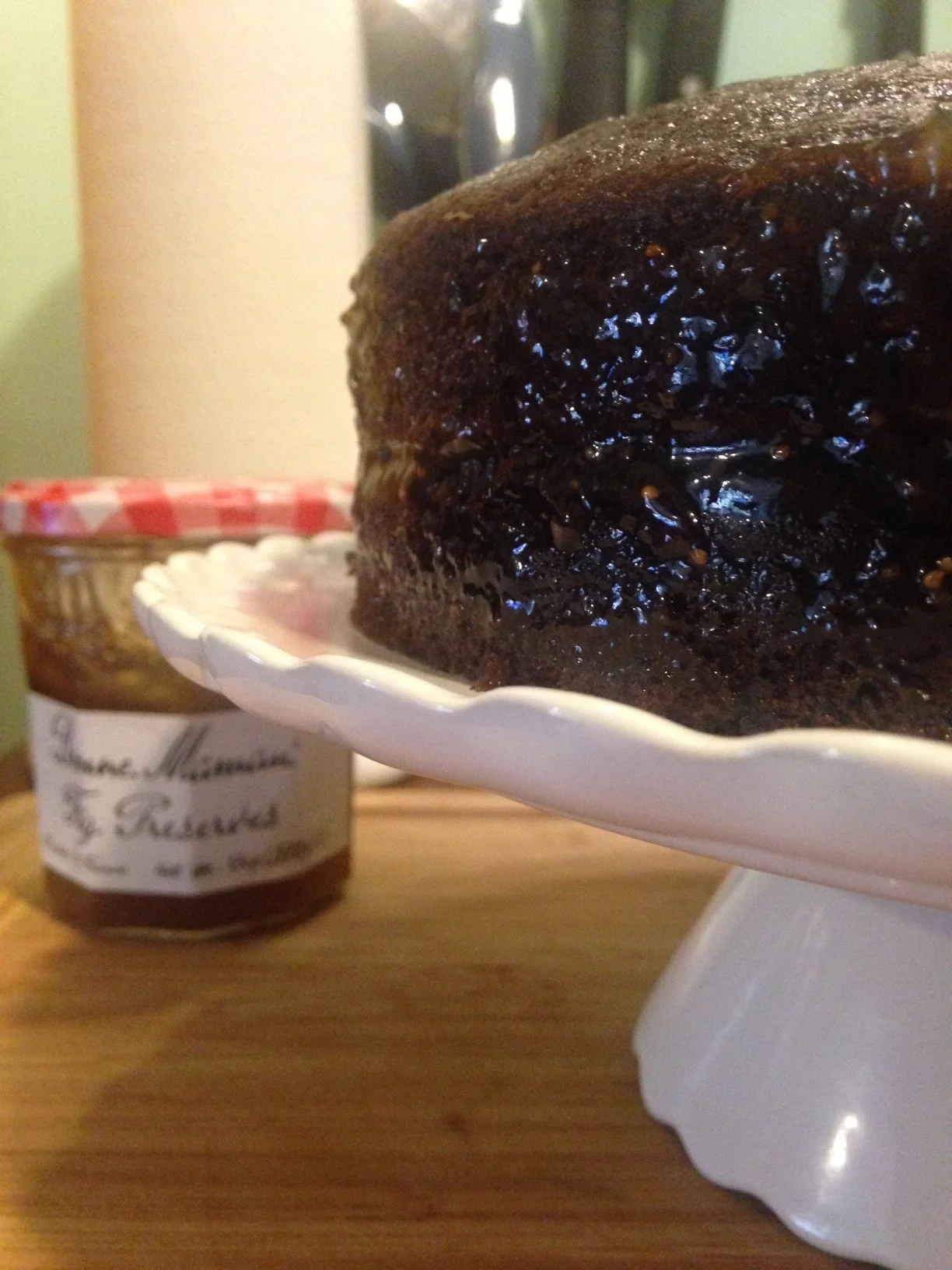 Next, we celebrated my mom’s birthday with dinner at Grandma’s. I brought a couple of salads, one with roasted beets and goat cheese over watercress and the other with watercress, sugar snap peas, radishes, and fresh mozzarella, inspired by an amazing seasonal salad I’d had recently at Astoria’s brick oven pizzeria, Milkflower. I also made chocolate cake with a fig preserve glaze.